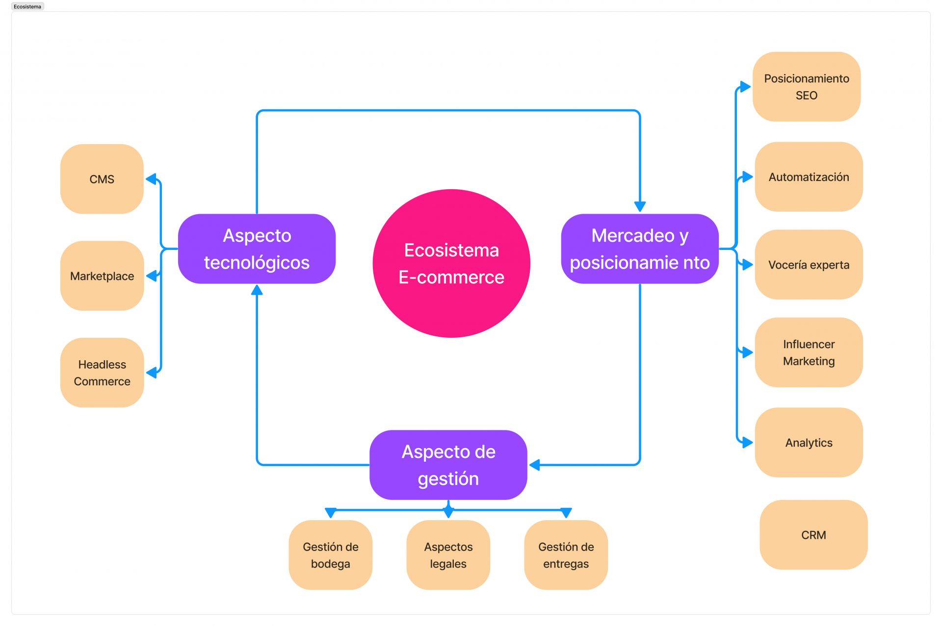 Estamos hablando de todas las partes que conforman realmente el comercio electrónico, pudiendo no necesitar todas, eso dependerá de los objetivos y las dimensiones de lo que buscas construir.